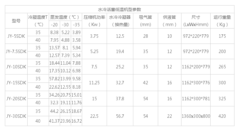 壓縮機、曲軸箱加熱器、殼管式水冷冷凝器、干燥過濾器、儀表盤、低溫(雙機)加油分、氣分