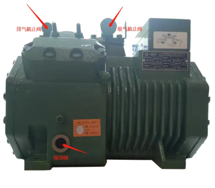 1、關(guān)閉高壓排氣及低壓吸氣截止閥,利用壓機(jī)上的工藝閥針放掉壓機(jī)內(nèi)部的制冷劑,使縮機(jī)曲軸箱與大氣相通。